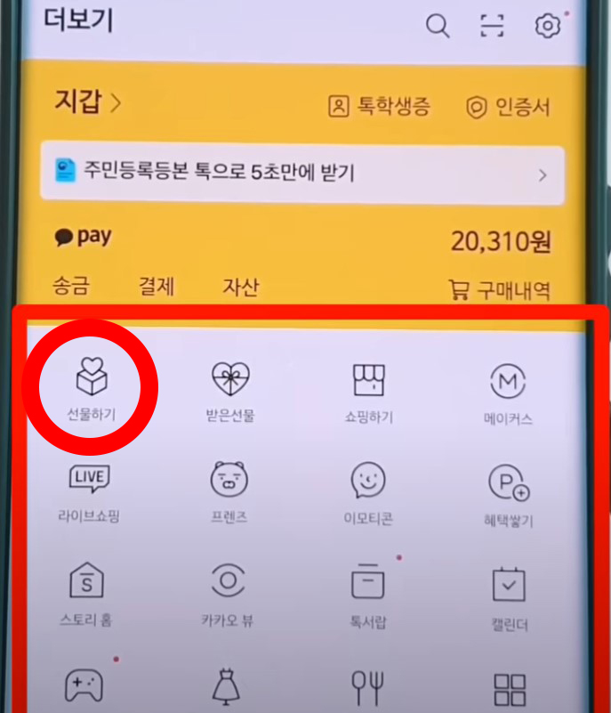 1. 카카오톡 앱에서 우측아래 더보기 클릭